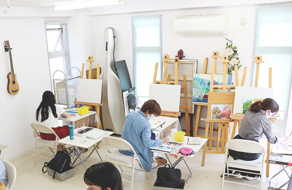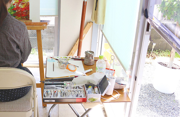 アトリエは2部屋に分かれていて、光の雰囲気も少し違います。どちらの部屋も明るくリラックスして描いていただけると思います。