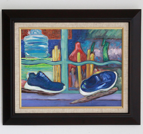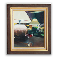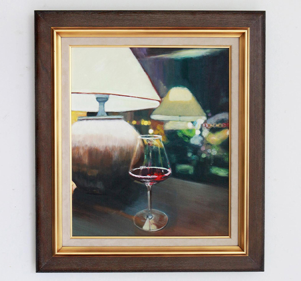 スタンドライトとワイングラスのある静物